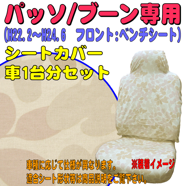 トヨタ パッソ(KGC3#)・ダイハツ ブーン(M60#S/M610S)専用シートカバー『ヘリンボン』(ベージュ)1台分セット[H22.2〜H24.6] M5-12