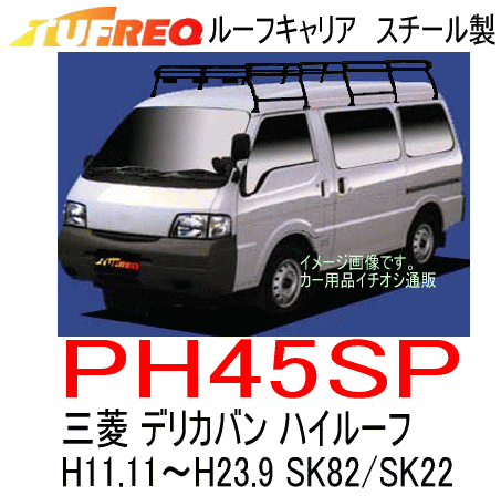 適合車種:三菱 デリカバン(SK82/SK22) H11.11〜H23.9 ハイルーフ車サイズ・仕様(mm)ルーフタイプ品 番荷台サイズキャリア高さD脚取付幅E 長さ A幅 B高さ C 雨ドイ付車ハイルーフPH45SP2,9251,3301003701,226〜1,594 お車への適合品は車種ごとに異なります。【適合検索ナビ】で、品番をご確認下さい。TUFREQ(タフレック) 品番:PH45SP <三菱 デリカバン(SK82/SK22) H11.11〜H23.9 ハイルーフ車>10本脚 スチール製ルーフキャリア ルーフラック 10本脚 普及実績No.1 スチール材に黒塗装をした、ビジネスユーザーに最も人気の仕様。市場での普及実績No.1モデル! 職人キャリア ブラックの外観は車のカラーを選ばずスマート、そして汚れにも強く耐久性も抜群なので長くお使いいただけます。ビジネス用途に徹底した、職人キャリアです。 前後回転パイプ 前後の回転パイプは、上下に回転式!簡単な操作でフルフラットになり長尺物の積載が可能となります。 ▼車両への適合確認 ご注文前に車種適合を必ずご確認お願いします。 メーカーホームページの【適合検索ナビ】で、お車への適合品が確認出来ます。 ご不明な点は当店までお問い合わせお願いいたします。 TUFREQ 適合表 (Pシリーズで検索して下さい。) ▼適合表へのリンク(メーカーサイト)