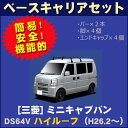 メーカー希望小売価格はメーカーカタログに基づいて掲載しています ■よくあるご質問 Q.必要な工具はありますか? A.特に工具は使用しませんが、脚立が必要です。 Q.一人でも取り付けることができますか? A.可能ですが、車が大きい場合は複数人で取り付けることをお勧めします。 Q.車にキズはつかない? A.説明書通りに取付けしていただければ大丈夫ですが、「 ガードフィルム」も別途ご用意できます。ほこりやキズなどから、愛車を保護する特殊フィルムです。 ご注文の際に「ご希望記載欄」にご記入ください。 【品番:MG01、サイズ70×90mm枚数:4枚】700円 Q.北海道までも送料無料なの? A.全国一律送料無料とさせていただいていますが、北海道、沖縄、離島の方は、 配送の都合によりお支払方法を「銀行振込」か「クレジットカード払い」のどちらかをご選択いただいております。申し訳ございませんが、予めご了承ください。 Q.急ぎで欲しいんだけど。 A.クレジット決済・銀行振込等前払いの場合はお手続き確認後、すぐにメーカー工場より出荷できます。 1〜3日(土・日・祝日除く)でお届けできます。 *適応車種 【三菱】ミニキャブバン DS64V ハイルーフ (H26.2〜H27.2) *商品詳細 TUFREQ ベースキャリアセット(バー2本、脚4個、エンドキャップ4個) *材質 スチール(ビニールコーティング) *色 ブラック *サイズ 【バー】長さ1,400mm 【脚】高さ220mm <お願い>北海道、沖縄、離島の方は、配送の都合によりお支払方法を「銀行振込かクレジットカード払い」のどちらかをご選択いただいております。申し訳ございませんが、予めご了承ください。