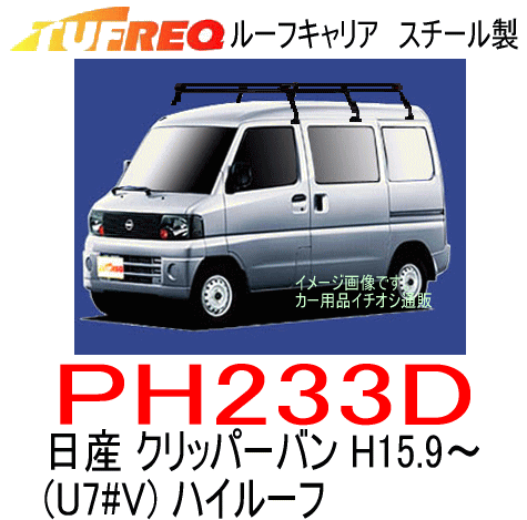 ■商品詳細 メーカー名:精興工業 TUFREQ タフレック■適合車種車種メーカー:ニッサン車種:クリッパーバン年式:H15.9〜H25.12型式:U71V/U72V備考:標準ルーフ■詳細シリーズ名:Pシリーズ品番:PL233C脚数:6本脚荷台サイズ:長さ:1,525 幅:1,150 高さ:100キャリア高さ:303ご注意:適応につきましては、ご注文前に必ずメーカーホームページにてご確認願います。 メーカーホームページはこちらをご確認ください。 ■お知らせ 送料:全国送料無料ご注文画面では[宅配便]をご選択ください。ご注文前にメーカーホームページにて 注意項目、適応をご確認願います。お客様の思い違いによるミスマッチの返品には応じられませんので、適合をよくご確認の上お求め願います。画像は共通イメージ画像でございます。品番によって形状は異なります。 ステッカー等は予告なく変更となる場合がございます。 ■お支払い/納期について ・商品は メーカーさんより直送となります。その為 代金引換でのお支払いは不可となります。・代金引換決済をご選択いた場合は、キャンセルとなります。予め ご了承ください。・メーカー欠品、生産中止等で入荷に見込みがございません場合は キャンセルとさせていただく場合がございます。予めご了承ください。