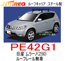 適合車種 日産 ムラーノ(Z50) H16.9〜H20.9 ルーフレール無車ルーフタイプ品 番荷台サイズキャリア高さD脚取付幅E 長さ A幅 B高さ C 雨ドイ無車PE42G18251,330100222810〜1,090 お車への適合品は車種ごとに異なります。【適合検索ナビ】で、品番をご確認下さい。TUFREQ(タフレック) 品番:PE42G1 <日産 ムラーノ(Z50) H16.9〜H20.9 ルーフレール無車> スチール製ルーフキャリア ルーフラック 普及実績No.1 装着共通イメージ画像 スチール材に黒塗装をした、ビジネスユーザーに最も人気の仕様。市場での普及実績No.1モデル! 職人キャリア ブラックの外観は車のカラーを選ばずスマート、そして汚れにも強く耐久性も抜群なので長くお使いいただけます。ビジネス用途に徹底した、職人キャリアです。 前後回転パイプ 前後の回転パイプは、上下に回転式!簡単な操作でフルフラットになり長尺物の積載が可能となります。 ▼車両への適合確認 ご注文前に車種適合を必ずご確認お願いします。 メーカーホームページの【適合検索ナビ】で、お車への適合品が確認出来ます。 ご不明な点は当店までお問い合わせお願いいたします。 TUFREQ 適合表 (Pシリーズで検索して下さい。) ▼適合表へのリンク(メーカーサイト)