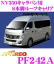主な適合・仕様車種名タイプ年式車両形式最大積載量NV350キャラバンハイルーフ(標準幅)H24.6〜E2650kg荷台サイズ(mm)キャリア高さ D(mm)脚取付幅 E(mm)長さA幅B高さCフロント側セカンド側サード側リア側フロント側セカンド側サード側リア側2,9251,1501002232232232231,0591,0591,0591,059商品説明・精興工業のルーフキャリア、TUFREQ(タフレック)PF242Aです。・スチール材に黒塗装をした、ビジネスユーザーに最も人気の仕様のルーフキャリアです。ブラックの外観は車のカラーを選ばずスマート、そして汚れにも強く耐久性も抜群なので長くお使いいただけます。・前後回転パイプを採用、上下自由に可動するので小荷物からハシゴ等まで自由にレイアウトできます。簡単な操作でフルフラットになるためハシゴ、材木、パイプなどの長尺物の積載も容易です。・風切音低減ブラケット付きで走行中の風切音を低減。・キャリア専門メーカーならではの4本脚から10本脚まで幅広いラインアップ。車種専用の設計なのでフッティングも抜群。ビジネスからレジャーまで幅広くお使いいただけます。※メーカー適合はこちらです。なお、適合がわからない場合は当社までお問い合わせいただければお調べさせていただきますのでお気軽にメール、電話にてお問い合わせくださいませ。※TUFREQは組み立て式のキャリアになりますので、お客様での組立が必要になります。なお必要なパーツは全て付属されております。●NV350キャラバン(ハイルーフ)用のラインアップハイグレードにセンスアップ!アルミ製ハイグレードキャリアHシリーズ普及実績No.1モデル!黒塗装スチール製キャリアPシリーズロング8本脚・HF242Aロング8本脚・PF242A本製品の適合について・本製品はNV350キャラバン(H24.6〜)ハイルーフ(標準幅)車専用です。・H24.6〜 NV350キャラバン・標準ルーフ車用はこちらです。・H24.12〜 NV350キャラバン・ワイドハイルーフ車用はこちらです。・H13.5〜H24.6 標準ルーフ車用はこちらです。・H13.5〜H24.6 ハイルーフ車用はこちらです。・S61.10〜H13.5 標準ルーフ車用はこちらです。・S61.10〜H13.5 ハイルーフ車用はこちらです。※写真は装着イメージになります。