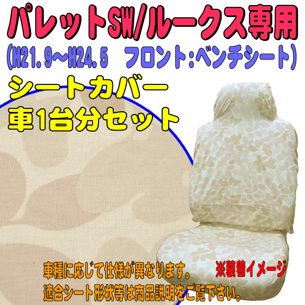 スズキ パレット・パレットSW(MK21S)/ニッサン ルークス(ML21S)専用シートカバー『リーフ柄』(ピンク)1台分セット[H21.9〜H24.5] M4-28