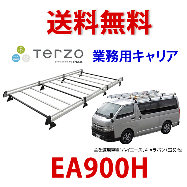 レインモール用8本脚タイプ主な適用車種:ハイエース、キャラバン(E25)他品番:EA900H製品サイズ:2870×1490×120mm製品重量:約25kg適合車種 EA900H(8本脚) タウンエースバン/ライトエースバン 標準ルーフ/H20.2〜 /S402M.412Mハイエースバン 標準ルーフ /H1.8〜H16.7/LH.RZH.TRH10#〜18#ハイエースバン 標準ルーフ/H16.8〜/KDH.TRH20#V レジアスエースバン 標準ルーフ/H11.7〜H16.7/LH.RZH.TRH10#〜18# レジアスエースバン 標準ルーフ/H16.8〜/KDH.TRH20#V キャラバン 標準ルーフ/H13.5〜H24.5/E25バネットバン 標準ルーフ/H11.6〜/SK#デリカバン 標準ルーフ/H11.11〜H23.9/SK22#.82#ボンゴバン 標準ルーフ/H11.6〜/SK#コモ 標準ルーフ/H13.5〜H24.6/E25 TERZO業務用キャリア適合情報(一覧) 2014年6月現在※キャリア適合は車種によって異なります。屋根タイプ(標準/ハイルーフ)、ボディタイプ(標準/ワイド幅)などご注意ください。 ご注文前に当店まで適合確認をして頂く事をお勧めします。 車種名 年式 型式 タイプ 適用品番 バー下 MIN寸法 装着時車高 (cm) 積載荷重 目安 トヨタ タウンエースバン/ライトエースバン H20.2〜 S402M.412M 標準ルーフ EA900H(8本脚) 43mm 205.1cm 60kg ハイエース H1.8〜H16.7 LH.RZH.TRH10#〜18# バン標準ルーフ EA900H(8本脚) 28mm 211.8cm 75kg H16.8〜 KDH.TRH20#V バン標準ルーフ EA900H(8本脚) 55mm 214.8cm 60kg レジアスエースバン H11.7〜H16.7 LH.RZH.TRH10#〜18# 標準ルーフ EA900H(8本脚) 28mm 211.8cm 75kg H16.8〜 KDH.TRH20#V バン標準ルーフ EA900H(8本脚) 55mm 214.8cm 60kg ピクシスバン H23.12〜 S321M.331M# 標準ルーフ EA900K(6本脚) 86mm 198.4cm 30kg ハイルーフ EA900K(6本脚) 27mm 193.8cm 日産 キャラバン S61.9〜H13.4 E24 バン標準ルーフ EA900K(6本脚) 35mm 213.8cm 75kg H13.5〜H24.5 E25 標準ルーフ EA900H(8本脚) 45mm 214.3cm 50kg NV350キャラバン H24.6〜 E26 標準ルーフ EA900N(8本脚) 54mm 215.8cm 75kg バネットバン H11.6〜 SK# 標準ルーフ EA900H(8本脚) 28mm 200.4cm 75kg EA900K(6本脚) 65mm 204.1cm 75kg ホーミー S61.9〜H13.4 E24 バン標準ルーフ EA900K(6本脚) 35mm 213.8cm 75kg ミツビシ デリカバン H11.11〜H23.9 SK22#.82# 標準ルーフ EA900H(8本脚) 28mm 200.9cm 75kg EA900K(6本脚) 65mm 204.6cm 75kg マツダ スクラムバン H17.9〜 DG64V ハイルーフ EA900K(6本脚) 18mm 200.1cm 30kg ボンゴバン H11.6〜 SK# 標準ルーフ EA900H(8本脚) 28mm 200.9cm 75kg EA900K(6本脚) 65mm 204.6cm 75kg スバル サンバーバン H24.4〜 S321B.331B - EA900K(6本脚) 27mm 193.8cm 30kg スズキ エブリイ H17.8〜 DA64V 標準ルーフ EA900K(6本脚) 95mm 200.6cm 30kg ハイルーフ EA900K(6本脚) 18mm 200.1cm 30kg エブリイワゴン H17.8〜 DA64W 標準ルーフ EA900K(6本脚) 未確認 201.1cm 30kg ハイルーフ EA900K(6本脚) 18mm 200.6cm 30kg ダイハツ ハイゼットカーゴ H16.12〜 S32#.33# ロールーフ EA900K(6本脚) 86mm 198.4cm 30kg ハイルーフ EA900K(6本脚) 27mm 193.8cm イスズ コモ H13.5〜H24.6 E25 標準ルーフ EA900H(8本脚) 45mm 214.3cm 50kg H24.7〜 E26 標準ルーフ EA900N(8本脚) 54mm 215.8cm 75kgベースキャリアとラック本体がセットになった業務用キャリアオールインワンキットです! 特長●システムキャリアメーカーが作ったスマート&スタイリッシュな業務用キャリア●ベースキャリアは長年信頼をいただいているTerzo製品をそのままの品質で使用。ベースバーは中面までポリエチレンコーティングを施し、防錆性、耐久性も抜群。●ベースキャリアとラック本体がセットになったオールインワンキット。●装着方法はベースキャリアを車に装着してから、ラックを装着。簡単セッティング。