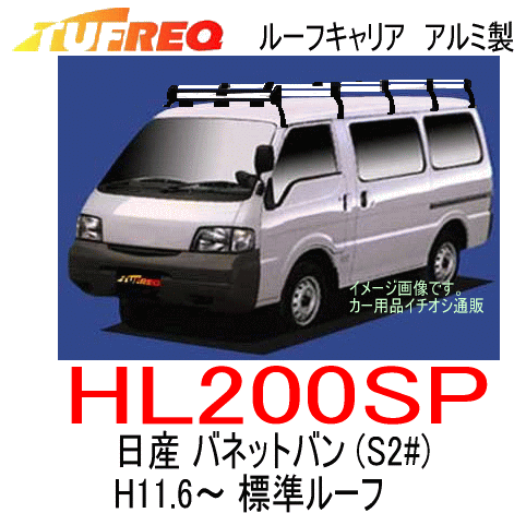 主な適合・仕様車種名タイプ年式車両形式最大積載量バネットバン標準ルーフH11.6〜S2#系50kg荷台サイズ(mm)キャリア高さ D(mm)脚取付幅 E(mm)長さA幅B高さC1,5401,3551202951,168〜1,448商品説明・精興工業のルーフキャリア、TUFREQ(タフレック)HL43です。・アルミ材をメインフレームにエアロフォルムと耐久性を兼ね備え高級感・存在感をアピールする最上級グレードルーフキャリアです。抜群の安定感でコンパクトな荷物はもちろんのこと、あらゆる荷物を安定して運ぶことができます。・前後回転パイプを採用、上下自由に可動するので小荷物からハシゴ等まで自由にレイアウトできます。簡単な操作でフルフラットになるためハシゴ、材木、パイプなどの長尺物の積載も容易です。・キャリア専門メーカーならではの4本脚から10本脚まで幅広いラインアップ。車種専用の設計なのでフッティングも抜群。ビジネスからレジャーまで幅広くお使いいただけます。※メーカー適合はこちらです。なお、適合がわからない場合は当社までお問い合わせいただければお調べさせていただきますのでお気軽にメール、電話にてお問い合わせくださいませ。※TUFREQは組み立て式のキャリアになりますので、お客様での組立が必要になります。なお必要なパーツは全て付属されております。●バネットバン(標準ルーフ)用のラインアップハイグレードにセンスアップ!アルミ製ハイグレードキャリアHシリーズショート4本脚・HL42ミドル4本脚・HL43ロング8本脚・HL44超ロング10本脚・HL200SP普及実績No.1モデル!黒塗装スチール製キャリアPシリーズショート4本脚・PL42ミドル6本脚・PL43ロング8本脚・PL44超ロング10本脚・PL200SPコストパフォーマンスNo.1モデル!メッキ処理スチール製キャリアLシリーズミドル6本脚・L360ロング8本脚・L460あわせてオススメ!リアラダーアルミパイプを採用し、軽量で耐久性に優れたスタイル。 リアラダーとルーフキャリアの組み合わせで作業性を大幅にアップ! 背の高い車両でも、ルーフキャリアへの荷物の積み下ろしはリアラダーを使えばラクラク作業! バネットバン用のリアラダーはこちら本製品の適合について・本製品はバネットバン(H11.6〜)標準ルーフ車専用です。・ハイルーフ(H11.6〜)車用はこちらになります。※写真は装着イメージになります。