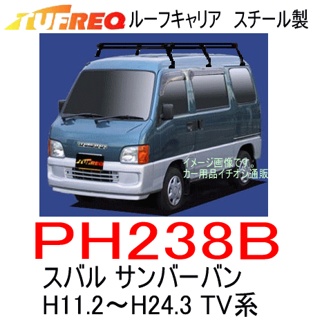 主な適合・仕様車種名タイプ年式車両形式最大積載量サンバーバン全車H24.3〜S321B/S331B50kg荷台サイズ(mm)キャリア高さ D(mm)脚取付幅 E(mm)長さA幅B高さCフロント側センター側リア側フロント側センター側リア側2,1251,1501003453133131,2571,2651,248商品説明・精興工業のルーフキャリア、TUFREQ(タフレック)PH236Cです。・スチール材に黒塗装をした、ビジネスユーザーに最も人気の仕様のルーフキャリアです。ブラックの外観は車のカラーを選ばずスマート、そして汚れにも強く耐久性も抜群なので長くお使いいただけます。 ・前後回転パイプを採用、上下自由に可動するので小荷物からハシゴ等まで自由にレイアウトできます。簡単な操作でフルフラットになるためハシゴ、材木、パイプなどの長尺物の積載も容易です。 ・車種専用の設計なのでフッティングも抜群。ビジネスからレジャーまで幅広くお使いいただけます。※メーカー適合はこちらです。なお、適合がわからない場合は当社までお問い合わせいただければお調べさせていただきますのでお気軽にメール、電話にてお問い合わせくださいませ。※TUFREQは組み立て式のキャリアになりますので、お客様での組立が必要になります。なお必要なパーツは全て付属されております。●サンバーバン(S321B/S331B)用のラインアップハイグレードにセンスアップ!アルミ製ハイグレードキャリアHシリーズ普及実績No.1モデル!黒塗装スチール製キャリアPシリーズミドル6本脚・HH234Bロング6本脚・HH236Cミドル6本脚・PH234Bロング6本脚・PH236CコストパフォーマンスNo.1モデル!メッキ処理スチール製キャリアLシリーズミドル6本脚・L276本製品の適合について・本製品はサンバーバン(H24.3〜)車専用です。・H11.2〜H24.3車用はこちらです。※写真は装着イメージになります。
