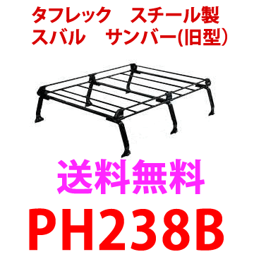 主な適合・仕様車種名タイプ年式車両形式最大積載量サンバーディアス全車H11.2〜H19.6TV/TW50kg荷台サイズ(mm)キャリア高さ D(mm)脚取付幅 E(mm)長さA幅B高さCフロント側センター側リア側フロント側センター側リア側2,1251,1501003803703701,1731,1651,208商品説明・精興工業のルーフキャリア、TUFREQ(タフレック)PH238Bです。・スチール材に黒塗装をした、ビジネスユーザーに最も人気の仕様のルーフキャリアです。ブラックの外観は車のカラーを選ばずスマート、そして汚れにも強く耐久性も抜群なので長くお使いいただけます。 ・前後回転パイプを採用、上下自由に可動するので小荷物からハシゴ等まで自由にレイアウトできます。簡単な操作でフルフラットになるためハシゴ、材木、パイプなどの長尺物の積載も容易です。・車種専用の設計なのでフッティングも抜群。ビジネスからレジャーまで幅広くお使いいただけます。※メーカー適合はこちらです。なお、適合がわからない場合は当社までお問い合わせいただければお調べさせていただきますのでお気軽にメール、電話にてお問い合わせくださいませ。※TUFREQは組み立て式のキャリアになりますので、お客様での組立が必要になります。なお必要なパーツは全て付属されております。●サンバーディアス用のラインアップハイグレードにセンスアップ!アルミ製ハイグレードキャリアHシリーズ普及実績No.1モデル!黒塗装スチール製キャリアPシリーズミドル6本脚・HH238Aロング6本脚・HH238Bミドル6本脚・PH238Aロング6本脚・PH238B※写真は装着イメージになります。
