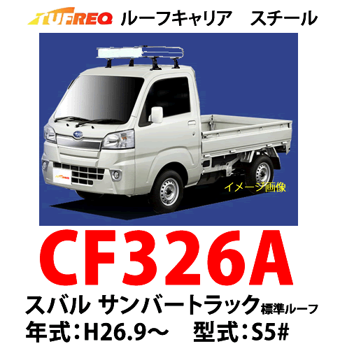適合車種スバル サンバートラック年式:H26.9〜型式:S5#標準ルーフ仕様 (サイズmm) タイプ 品番 荷台サイズ キャリア高さD 脚取付幅E 脚ピッチF 荷台パイプ(本数) 長さ A 幅 B 高さ C 専用タイプ CF326A 575 1,250 140 253 960〜965 300 3 お車への適合確認は【適合検索ナビ】で、品番をご確認下さい。(Cシリーズで検索して下さい。) ※キャリアの形状は型番によって異なります。商品形状に関してはお問い合わせをいただくか、適合検索ナビにてご確認ください。精興工業 トラック ダンプ ハイゼット ルーフキャリア ラック積載許容量 50kg ※軽トラック用のみ30kg迄です ハイコストパフォーマンスモデル 素材には丈夫なスチールパイプを使用したハイコストパフォーマンスモデル。 人気No.1 スタンダードなスタイルでトラッカーユースNo.1! 広告効果バツグンの記名板を採用! モノを積むという機能だけではなく社有車等にご利用の際は、会社名の告知等に絶大な効果をもたらす記名板を全Cシリーズに標準採用。 ▼車両への適合確認 ご注文前に車種適合を必ずご確認お願いします。メーカーホームページの【適合検索ナビ】で、お車への適合品が確認出来ます。 ご不明な点は当店までお問い合わせお願いいたします。 TUFREQ 適合表 (Cシリーズで検索して下さい。) ▼適合表へのリンク(メーカーサイト)