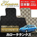 ■ 商品名フロアマット【アダルトチェック柄】トヨタ★カローラランクス★H13/1〜H18★NZE121・124、ZZE122・123・124(車1台分 フロアーマット)■ 車種名 ■ 年式■ 対応型式カローラランクスH13/1〜H18NZE121・124、ZZE122・123・124■ その他の型 2WDまたは4WD、フットレスト有無の組み合わせで合計4型■ 商品紹介チェック柄の升目の大きさが、チェックシリーズおよびユーロチェックシリーズより大きいです。原反の生地目の指向性が強く、見る方向によりチェック柄の見え方が変わります。素材はポリプロピレンでチェック柄の升目の1辺は約45ミリです。毛先はカット&ループにより高級感を出しています。■ 注意事項 ※こちらのZEROフロアマットは全て受注生産です。(ご注文いただいてから約10日前後に発送させていただきます。)同じ種類のお車でも、年式、型式、2WDか4WD、ミッション、乗車定員、その他車種特有の形状によってフロアマットの形が異なります。(画像はサンプル品です)受注生産品のため返品はお受けできません。ご注文のお間違えを防ぐため、ご注文時の備考欄に以下の項目をご記入ください。(車検証をお手元にご記入していただくことをおすすめいたします。)例・車種名エスティマ・対応型式ACR30W・グレードJグレード ・ドア枚数5ドア ・シフトノブ位置コラム ・その他サードシート手動格納など、「その他の型」に記載また、お買い物かごに入れていただく前に必ず、 マットのカラー、 ヒールパットの有無(お客様がご選択していただけます。)、 ハンドル位置、初年度登録年月日、AT or MT、2WD or 4WD をご選択ください。お手数ですが、何卒よろしくお願いいたします m( __ __ )m ■ 有料オプション (脱臭加工、ロック糸カラー選択、ヒールパット追加) 脱臭加工、ロック糸(マットの淵)のカラー選択、ヒールパットもう一ヵ所追加をご希望の方は、以下の有料オプションをご購入くださいませ。※お車の大きさによって料金が変わりますので、ご注文の際はオプション名と料金を再度ご確認くださいませ。 今まで以上に強力になりました。脱臭、消臭に加え抗菌、防カビ、帯電防止機能も加わった特殊コーティング溶液を専用機械によりマット繊維の奥まで浸透させます。連続50 回マット洗浄機にかけても機能の低下は、ほとんどありません。エマルジョンタイプですので、マット本来の色合いも全く変わりません。 車種クラス価格(税込) 軽クラス¥2,100 コンパクトカー/乗用車クラス¥3,150 ミニバンクラス¥4,200 選べるロック糸のカラーは13色 ロック糸のカラーはグリーン、ネービー、ベージュ、ブラック、セーブル、ココア、シルバー、ブルー、イエロー、レッド、オレンジ、ローズ 、ホワイトの13色となります。ご希望の色をご指示下さい。 車種クラス価格(税込) 軽クラス¥1,050 コンパクトカー/乗用車クラス¥2,100 ミニバンクラス¥3,150マットを保護する!!耐久性の強いヒールパット標準仕様となっている運転席側ドライバーのかかと部分につけるマットの保護パットをさらに1ヵ所/1,050円 (税込)でご希望の場所にお入れする事が出来ます。 価格(税込) 一ヶ所につき¥1,050ZEROフロアマット【アダルトチェック柄】トヨタ★カローラランクス★H13/1〜H18★NZE121・124、ZZE122・123・124(車1台分 フロアーマット)受注生産品となりますので、返品ができません(>_<)商品説明を最後までお読みいただいてから、ご注文お願いいたします。フロアマットの記載価格は、お車一台分の価格となっております。ベージュグレー (灰色)ブラック (黒色)※ご注意事項※ズレ止めの仕様に関しまして車種によっては、ずれ止めの金具が、楕円形やコック式など特殊なものがあります。これらは、メーカーのオリジナル商品につき、当店のフロアマットは対応しておりませんのでご注意ください。(丸いリングのストッパーホールがついておりますが、車種によってはお車の突起とぴったりと当てはまるものではございません。※車種によっては、ストッパーホールではなく、裏側がマジックテープ仕様となります。)特に特殊な純正金具が車両側に取り付けされている場合は車両側の金具を取り外してからZEROのフロアマットを敷くような対応となります。ズレ止めの仕様に関して、ご心配な方は事前に必ずお問い合わせくださいませ。ズレ止めに関してのクレーム・返品等は一切お受けできませんので、ご了承ください。リングを取り付けしないで、フロアマットの裏面にマジックテープをお付けすることも可能ですので、カートに入れていただいた後、備考欄の項目に「マジックテープで」とご記入ください。また別売の汎用金具(フック)もございますので、ご希望の場合は、備考欄にお書きください。★簡単貼り付けタイプおよびネジ止めタイプ共に1個525円での別売となります。