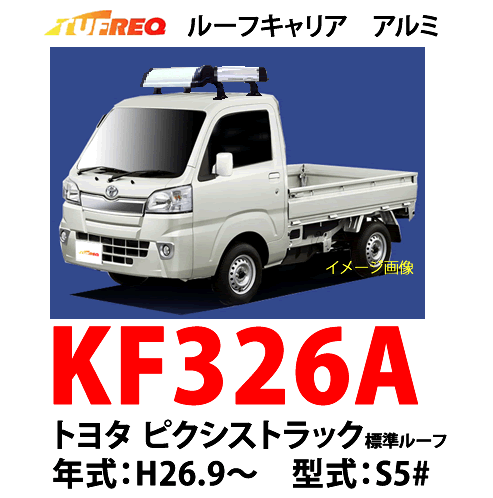 ※ご注文前に、必ず商品仕様(公式サイトは、コチラ)・車種適合(適合表は、コチラ)をご確認のうえ、ご購入をお願い致します。ご注文後、お客様のご都合による返品・交換は、お受けいたしかねますので予めご了承の上お買い求めください。品番荷台サイズキャリア高さ(D)脚取付幅(E)脚ピッチ(F)床板枚数長さ(A)幅(B)高さ(C)KL226201,0001302801,072〜1,1823003KL427201,3501302801,419〜1,5294006KL627201,6401302801,710〜1,8204007KL228A6271,1501302981,050〜1,1823003KL321A6271,2501302731,163〜1,4433003KL324C6271,2501302791,278〜1,2803003KL325B6271,2501303231,080〜1,3603003KF227A6271,150130260860〜865 3003KF324D6271,250130260960〜9653003KF326A6271,250130243960〜9653003KF327B6271,250130260960〜9653003KF327C6271,250130260960〜9653003KF421B8251,3491302181,334〜1,3945006KF421C8251,3491302181,334〜1,3945006KF422A8251,3501302181,450〜1,5105006KF423A7201,3501302181,330〜1,3903356KF423D8251,3491302181,415〜1,4355006KF423E8251,3491302181,364〜1,3945006KF425C7201,3501302181,330〜1,3904006KF425D7201,3501302181,330〜1,3904006KF429A8911,3501302601,489〜1,5495636KF621A8251,6491302181,625〜1,6855007KF621B8251,6491302181,625〜1,6854507KF623B7201,6401302181,621〜1,6813357KF623C9961,6401302181,621〜1,6816767KF623F8251,6491302181,665〜1,6955007KF625E7201,6401302181,620〜1,6804007KF629A8911,6501302601,720〜1,7805637KH226A6271,1501303541,050〜1,1663003KH228A6271,1501304001,050〜1,1663003空力も考慮したスタイリッシュタイプ!アルミ素材フレームとディフレクターや床板等の主要部にはグレード感の高いアルミ素材を使用し耐久性にも優れたモデル。ジャストフィット今までにないスタイリッシュなデザインでトラックにジャストフィット。空気抵抗を軽減キャリアの前面に走行中の風の巻き込みを防いで空気抵抗を軽減させる働きをもつディフレクター機構を採用。デザインと空力に優れたフロントカバーを採用キャリアボディを支える強靭なフレームとしての機能に加えて、ノーズを床板面より低くレイアウトしたこと、またその空力に配慮した形状とにより車両全体の空気整流効果を発揮し、また従来にない斬新なスタイルを確立しました。対応車種トヨタ/ピクシストラック 標準ルーフ H23.12〜 S201U/S211U