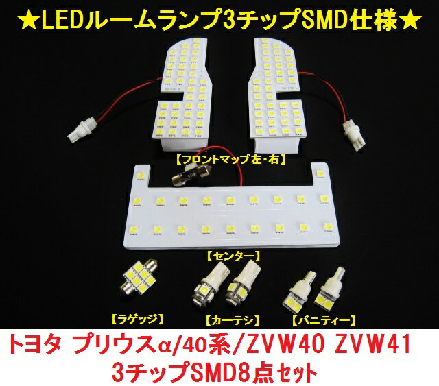 ★超高鮮度3チップSMD 保証付トヨタ プリウスα/40系/ZVW40 ZVW41  プリウスアルファーLEDルームランプ