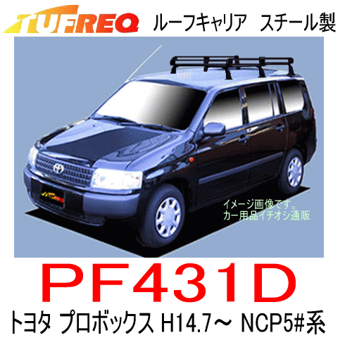 代表的な適合車種車種名年式型式 トヨタ プロボックスH14.7〜H26.8NCP50V/NCP51V/NCP55V/NLP51V NCP58G/NCP59G トヨタ サクシードNCP51V/NCP55V/NLP51 VNCP58G/NCP59G トヨタ プロボックス H26.8〜 NCP16#/NSP16# トヨタ サクシード NCP16# 「アルミ×スチール製」も適合品設定ございます。→HF431Dはこちらから仕様・サイズ(mm) 品番 荷台サイズ(mm) キャリア高さ D 脚取付幅 E 長さ A 幅 B 高さ C フロント側 センター側 リ ア 側 フロント側 センター側 リ ア 側 PF431D 1,825 1,280 100 258 228 233 1,160 1,150 970 お車への適合品は車種ごとに異なります。【適合検索ナビ】で、品番をご確認下さい。TUFREQ(タフレック) 品番:PF431D <トヨタ トヨタ プロボックス> スチール製ルーフキャリア ルーフラック 普及実績No.1 スチール材に黒塗装をした、ビジネスユーザーに最も人気の仕様。市場での普及実績No.1モデル! 職人キャリア ブラックの外観は車のカラーを選ばずスマート、そして汚れにも強く耐久性も抜群なので長くお使いいただけます。ビジネス用途に徹底した、職人キャリアです。 前後回転パイプ 前後の回転パイプは、上下に回転式!簡単な操作でフルフラットになり長尺物の積載が可能となります。 ▼車両への適合確認 ご注文前に車種適合を必ずご確認お願いします。 メーカーホームページの【適合検索ナビ】で、お車への適合品が確認出来ます。 ご不明な点は当店までお問い合わせお願いいたします。 TUFREQ 適合表 (Pシリーズで検索して下さい。) ▼適合表へのリンク(メーカーサイト)
