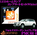 点灯イメージ適合車種車種名型式モデルイヤーセット内容品番フォルクスワーゲントゥアレグ7L2007y〜2011yフロントルーム/フロントマップ/リアルーム/トランクルーム/リアゲートPMC607フロントフット/フロントカーテシ/グローブボックス/リアフット/リアカーテシPMC614※適合は2015年2月現在のものです。モデルチェンジ等により適合に変更が生じる場合もございます。大変お手数ではございますが、最新の情報についてはメーカーページをご覧いただくか、当社までお問い合わせいただければお調べさせていただきます。※上記のLEDのセット内容は車種により異なります。また、ポジションランプ/ライセンスランプは本シリーズに含まれておりません。商品説明・promina COMP(プロミナコンプ)のLEDルームランプ コンプリートセット、PMC614 [ホワイト]です。・promina COMPシリーズはバルブタイプを合わせるだけの汎用タイプとは異なり、完全なる車種別専用設計として創り込まれています。車種別の特性も踏まえて特殊回路機能のLEDを振り分けているため、点灯不良や消灯時の微発光などの症状を抑え、LEDルームランプとして最高のパフォーマンスを発揮します。・LED素子は日亜化学製を採用。耐久性と安定性の面でも優れた逸品です。日本製&メーカー1年保証付きなので安心してお使いいただけます。・カラーラインアップは2色展開となっており、本製品のカラーは白さと明るさを追求したホワイトです。もう一方のカラーは、安らぎと暖かみがあるWarm color(暖色系)があります。・promina COMPシリーズには国産車から輸入車まで、それぞれ車種専用設計で幅広いラインアップがあります。他の車種用をお探しの方はコチラからどうぞ。注意事項●promina製品は、球切れ警告や装着したLEDが点滅するなどの症状を回避する為にキャンセラーを内蔵していますが、車両検証を行って球切れ警告が点灯しないこと、正常点灯することを確認した車両でも、稀に車両個体差によって球切れ警告灯が点灯したり装着したLEDが正常点灯しないという症状が発生する場合があります。万一そのような症状が発生した場合はお問い合わせ下さい。●年式や型式の車両情報がメーカー適合上で装着可能となっていても、オプション装着品や特別仕様車の架装内容、寒冷地仕様などの装備品の違い、正規輸入車と並行輸入車の違い、車両個体差などにより装着できない場合やバルブ形状が異なる場合もあります。※ページ内で使用している画像は全てイメージです。